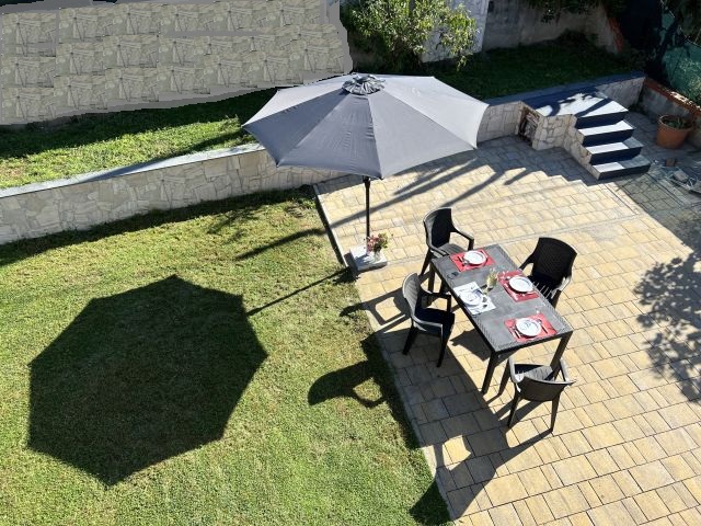| Komfort | Geschirrspüler, Mikrowelle, Fernsehen, Waschmaschine, Bügeleisen und -Brett, Staubsauger, Grill, Gartenmöbeln, aufgestellter Pool mit Liegebetten, Fliegengittern an den Fenstern, Babybett und -Hochstuhl, Privatparkplatz. |