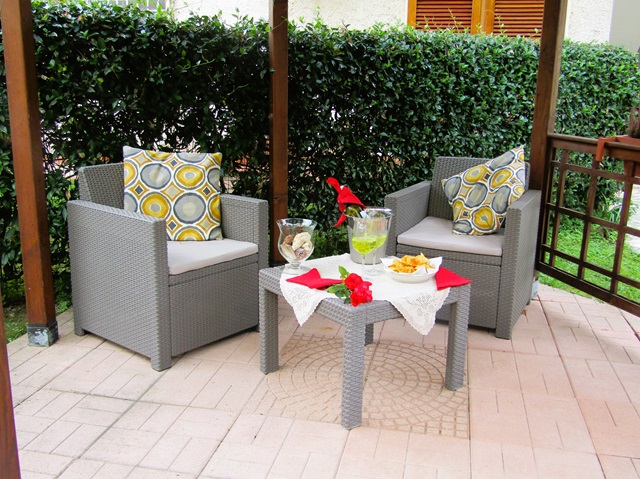 | Garten | Außen können Sie herrlich entspannen bei der Pergola, dass mit Barbecue und Gartenmöbeln ausgestattet ist. |