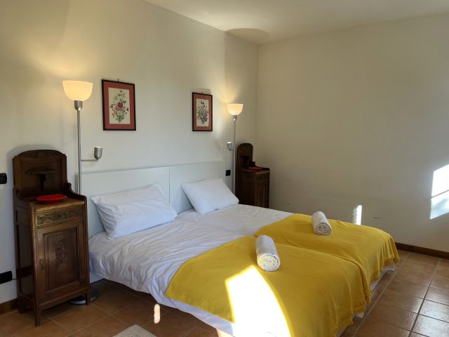 Chambres | L'appartement principal, à l'étage supérieur, comprend une chambre double et une chambre à deux lits. Au rez-de-chaussée, deux suites avec accès du jardin, chacune dotée d'une salle de bain privée avec douche. Couchettes : 8. |