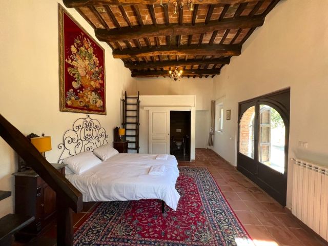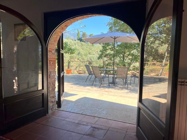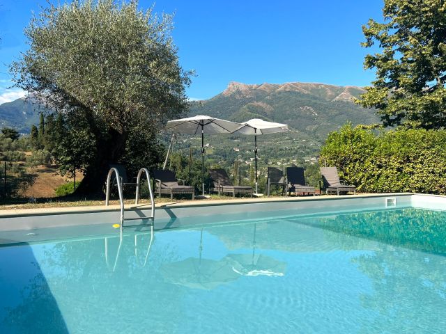 Cod. 317CAM - Immersa in un grande parco, nel verde e nella tranquillità delle colline di Camaiore, la struttura offre agli ospiti un ambiente rustico ma ricercato, in perfetto stile toscano, con pavimenti in cotto, soffitti con travi a vista e pareti in sasso. La Villa è situata a pochi minuti dalle spiagge, dalle attrazioni della Versilia ed a pochi chilometri dalle maggiori città d’arte della Toscana quali Lucca, Pisa e Firenze. L'ambiente è curato in ogni minimo particolare. Al piano terra si trova una sala con zona pranzo, una cucina ottimamente attrezzata e una camera matrimoniale con bagno completo. Il piano superiore offre quattro camere matrimoniali, una camera tripla (matrimoniale più letto singolo) e tre comodi bagni con vasca. Esternamente l’ampio parco è dotato di una piccola struttura in muratura con forno a legna, barbecue e grande tavolo con sedie per cenare e pranzare all’aperto. La bella piscina privata interrata, corredata di bagno con spogliatoio, doccia esterna, ombrellone e lettini prendisole, offre agli ospiti l’opportunità di trascorrere piacevoli momenti di completo relax immersi nei colori e nei profumi della natura circostante. Ampio parcheggio privato all’interno della proprietà.